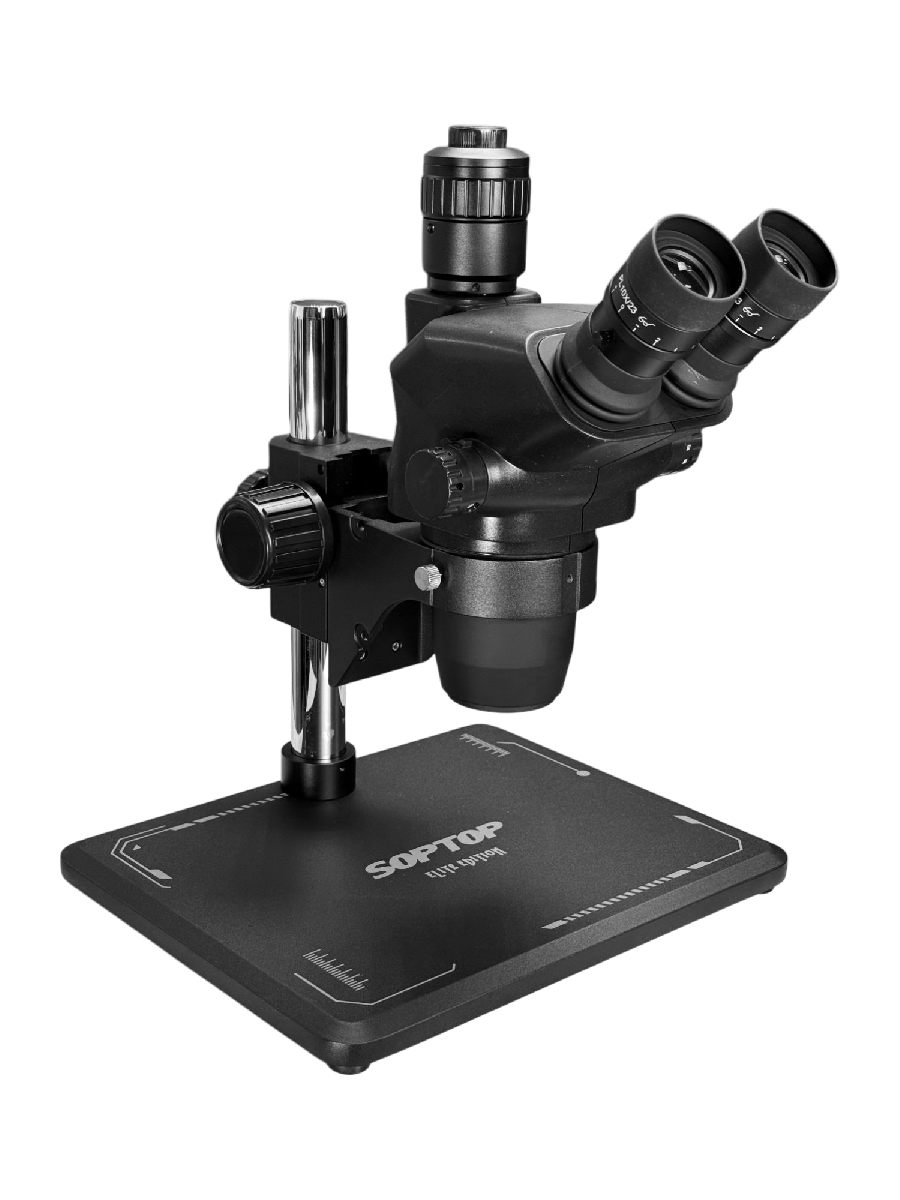 Микроскоп тринокулярный SopTop 9 Elite с подсветкой и линзой (6.7-45X; блокируемый глаз; черный)