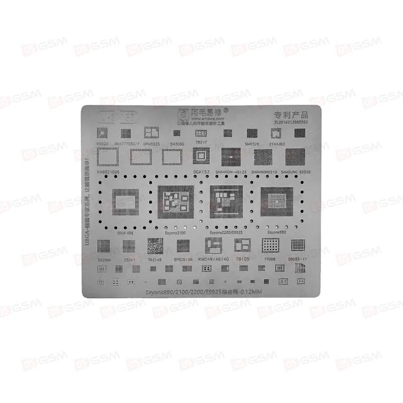 Трафарет для BGA микросхем Amaoe U-SMG5 (Exynos990/2100/2200/E9925 - 0.12MM) — это качественный инструмент, предназначенный для профессионального ремонта и обслуживания мобильных устройств.