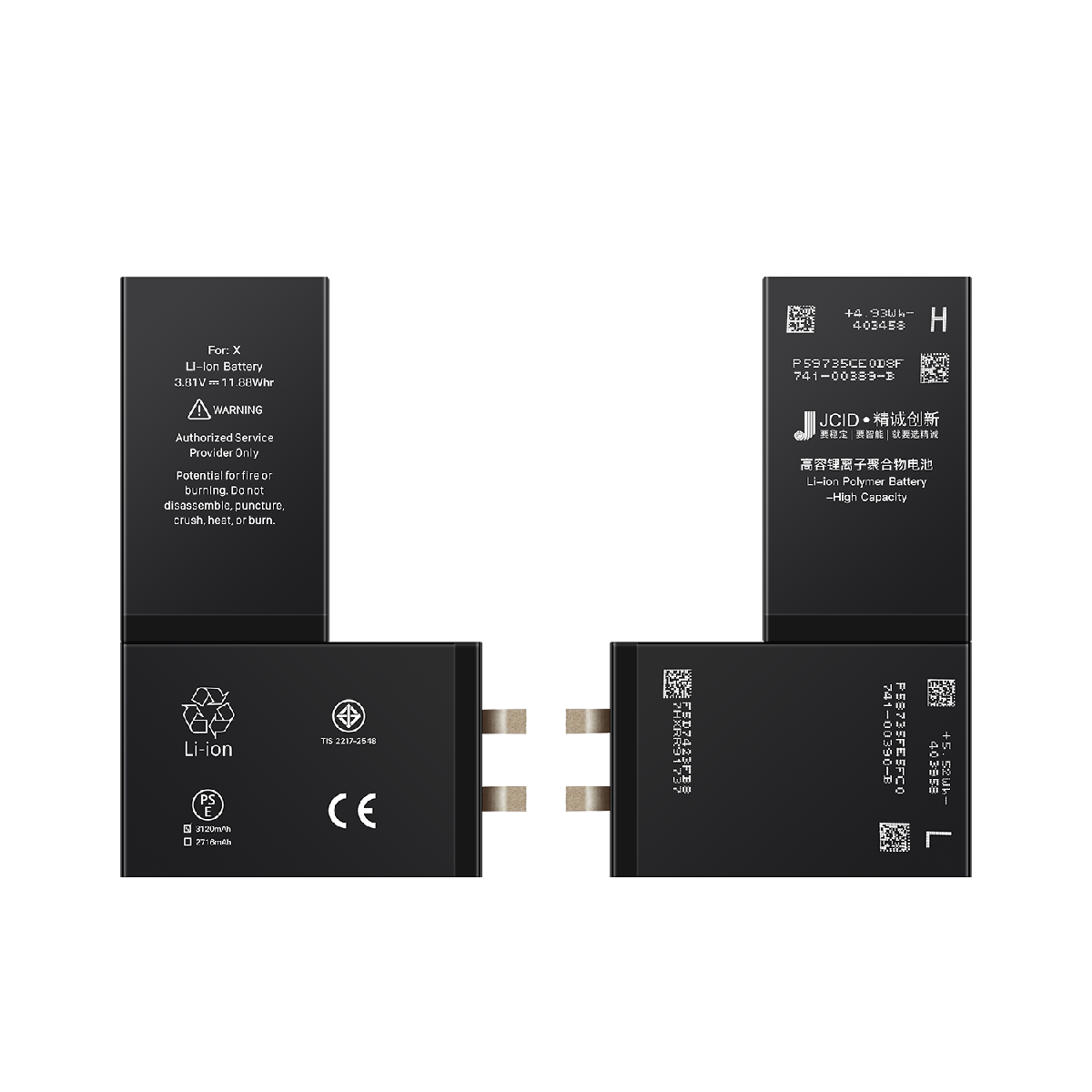 Аккумулятор усиленный без шлейфа iPhone X (JCID; High Capacity Cell; 3100 мАч)