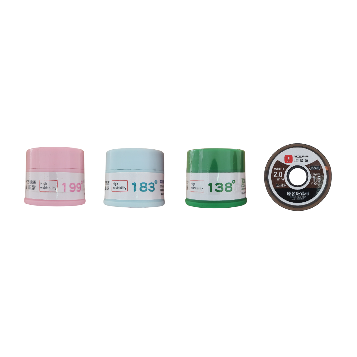 Набор для пайки YCS 4 in One (Пасты 138, 183, 199 и оплетка 2015)