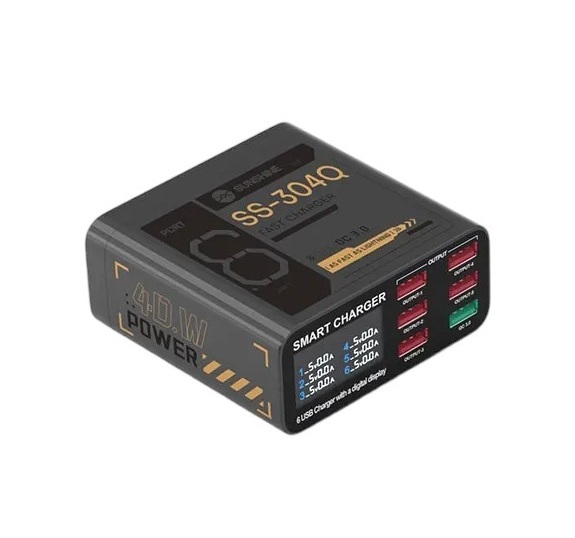 Многопортовое зарядное устройство Sunshine SS-304Q (6 портов; 40 Вт; QC 3.0; серый)