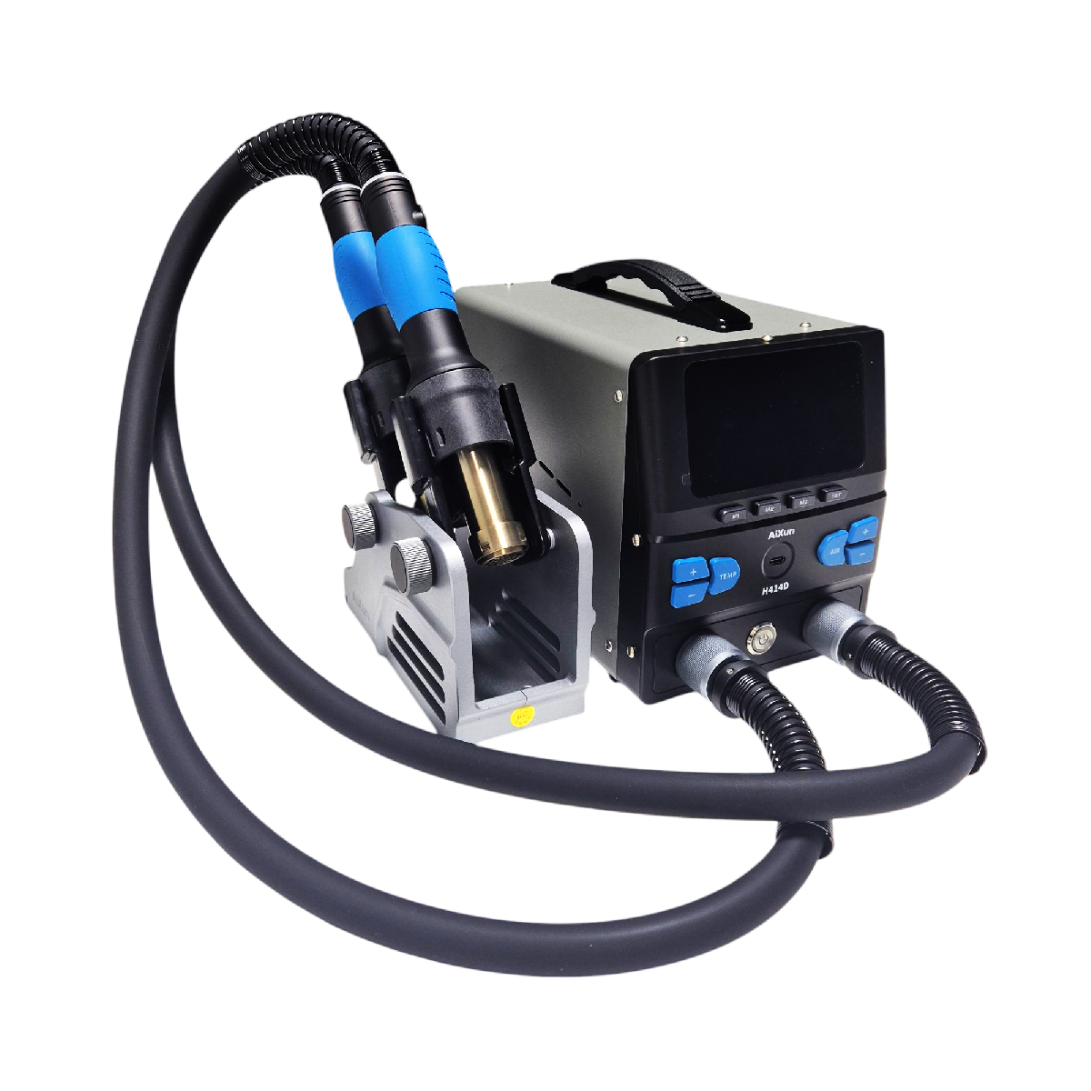 Термовоздушный фен двойной Aixun H414D – это надежный инструмент для профессионалов в области ремонта мобильной техники. С мощностью 1200 Вт и производительностью 60 литров в минуту, этот фен обеспечивает быстрый и эффективный процесс пайки, его высокая температура в диапазоне от 100 до 500 ℃ позволяет работать с различными материалами. Незаменимый помощник для снятия деталей, разогрева клея и выполнения других тонких операций.