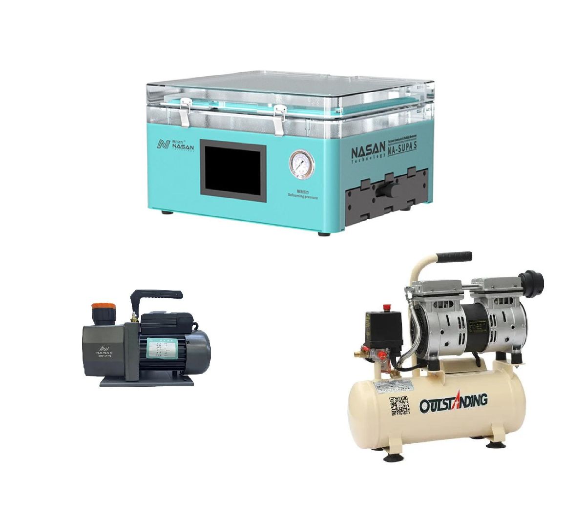 Комплект для переклейки дисплеев Nasan Supa S (Ламинатор 15" c барокамерой, компрессор и помпа RS2)
