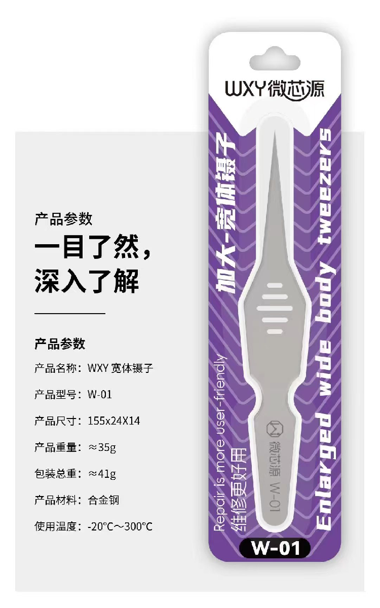 Пинцет прямой WXY W-01 (Enlarged wide body)