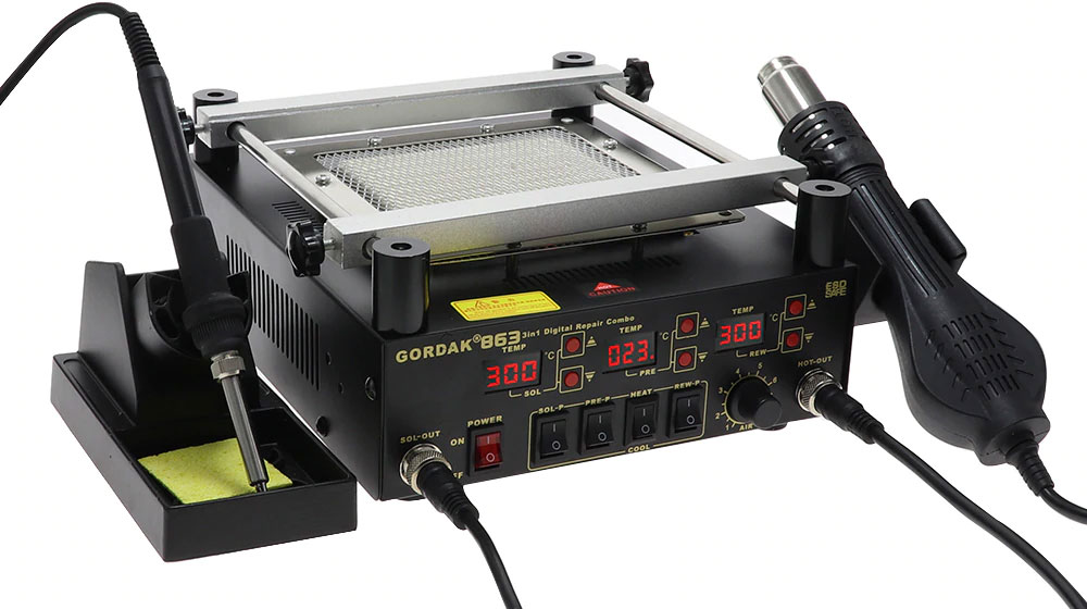 Паяльная станция с термофеном и нижним подогревом Gordak 863 – это идеальное решение для профессионалов в ремонте мобильной техники. Она обеспечивает высокую точность и надежность при пайке, что делает процесс работы более эффективным и комфортным.
